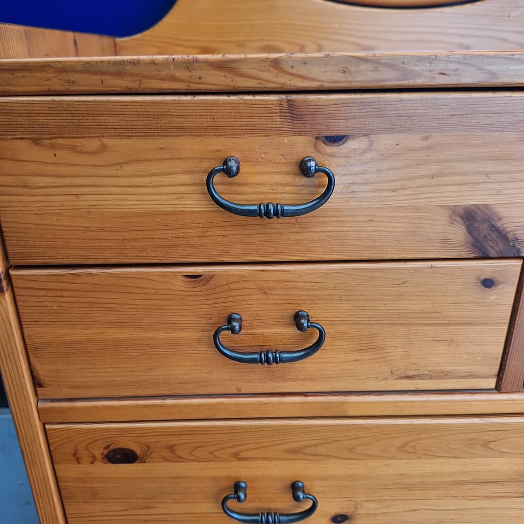 Toaletka z lustrem, drewno sosnowe, wymiary długość 76 cm, głębokość 41,5 cm, wysokość całkowita 159 cm, wysokość do blatu 103 cm. Możliwy transport. Cena 450 zł.