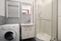 łazienka z kabiną prysznicową oraz z wc.