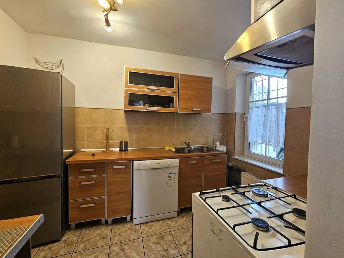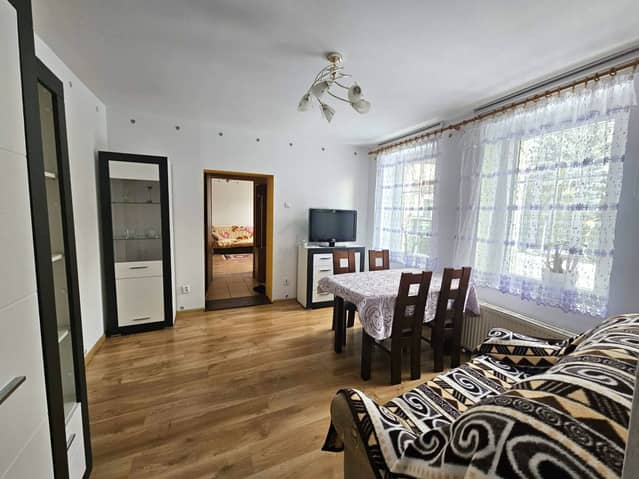 Mieszkanie w pełni umeblowane i wyposażone w sprzęt AGD (pralka, suszarka, lodówka, zmywarka, kuchenka gazowa i mikrofala).
