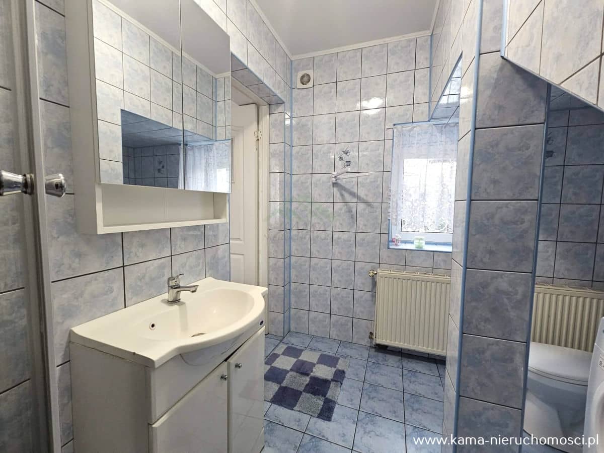 Na podłogach panele i kafle.